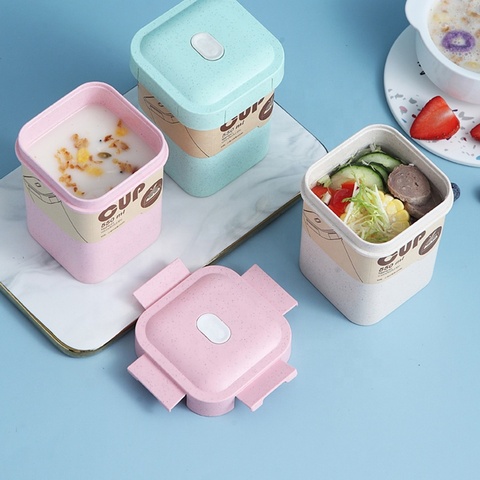 2020 New Product 550ml Wheat Straw Soup Bowl With Lid Sealed Moistureproof Wheat Fiber and Soup Bowl Cups