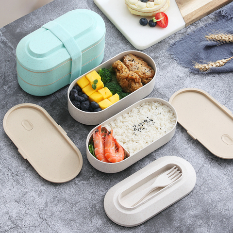 Double Layer Wheat Straw Bento Lunch Box Food Storage Box With Belt